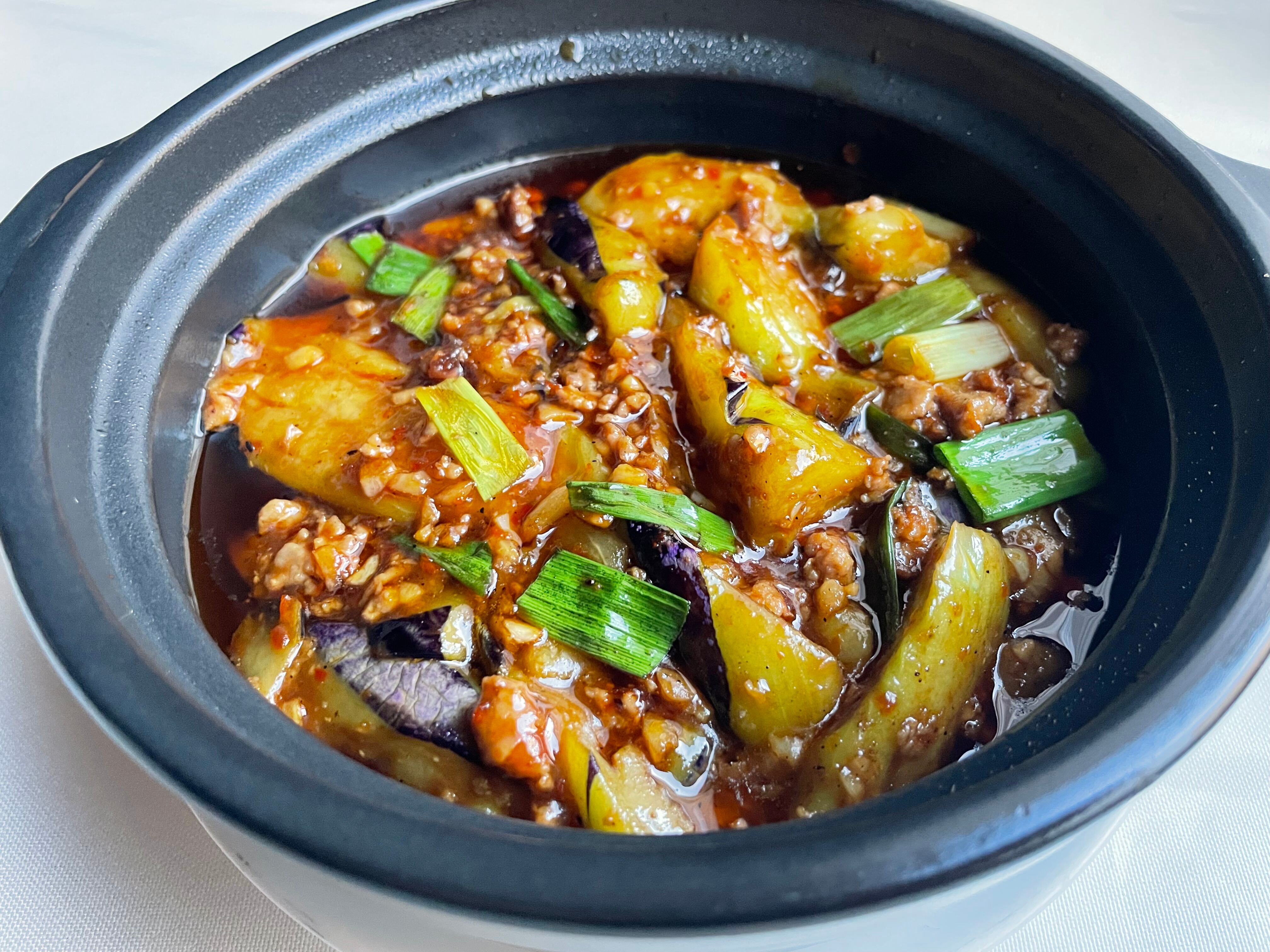 数種類の香辛料を使った辛さの中に旨みのあるマーボーナスです。味がしっかり絡んだひき肉とナスでご飯が進みます。